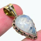 Natural Rainbow Moonstone 925 Solid Sterling Silver TwoTone Pendant 1.38"