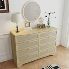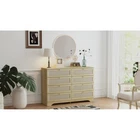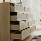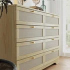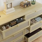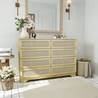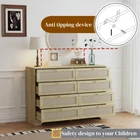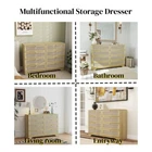 Natural Rattan Style: Drawers are equipped with real woven rattan, while round golden handles, the drawer dresser will add a mid-century and minimalist charming to your home. Ample Storage Space: Dimensions 47.24"L x 13.78"W x 33.46"H, while your lamp,photos,books and flowers can be placed on 47.24’’ wide wooden tabletop,then the 8 large drawers provide enough storage space choice for clothes, quilts, bed sheets and all your bedtime items, which keep your belongings organized and room tidy! Multi-Functional Cabinets: You can not only use it as a dresser, but also be used as beside tabe, TV stand(suit for 50"TV), clothing organizer/lingerie dresser, entryway table, accent storage cabinet for living room. Ideal for bedroom, closet, living room and entryway. Durable and Stable: This wooden rattan dresser is made of EPA-grade particleboard, the frame is sturdy and stable which can hold lots of items and last for a long time. Easy to Assemble: With simple frame, labled boards and detailed instructions, it only takes about 90mins with 1 person, you can get a practical 8 drawer dresser. Real rattan door The drawer tops are decorated with handmade rattan weaves that are close to nature and go well with most home décor styles Smooth slide drawer The metal slide rails are silky smooth and have a safety buckle to keep your family safe Sturdy base Compared to the table legs, this floor-to-ceiling base is stronger and more difficult to move away, plus it is anti-tipping to protect the safety of your family Multi storage capacity The large storage space with 8 drawers can easily cope with the storage needs of your bedroom and living room, which is beautiful and functional