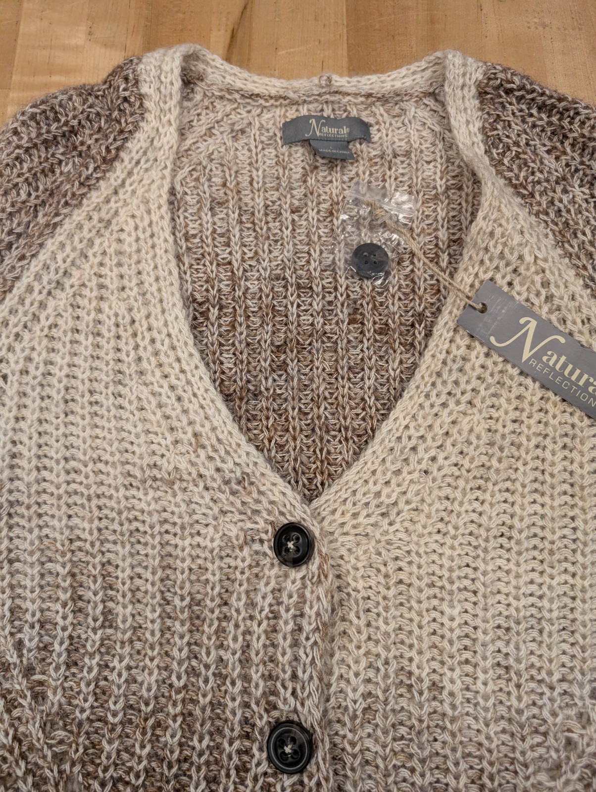 Cozy 60% reclaimed polyester/35% nylon/5% wool fabric keeps you warm and comfortable in a more sustainable way. Use this cardigan sweater to instantly polish virtually any outfit! Front Body Length (Based on Size M): 22.5". Hand wash only. Imported. 60% reclaimed polyester/35% nylon/5% wool Eye-catching spacedye design Warm and comfortable