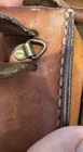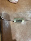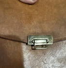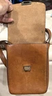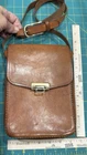 Vintage 1940s Natural Tan Heavy Duty Cowhide Leather Convertible Saddle Camera Belt Shoulder Bag *The reason for the 40s date, is because this looks much like the camera bag my dad used during WWII, while filming dro p sites from a B17 Belt strap is removeable - can actually be used as a belt through the belt lug in the back.. will fit a waist size to 42" Use as a belt bag, double the strap as in first picture, to carry, or use the strap opened to be a tighter cross the chest bag, or as a shoulder bag. Drop from 9" to 18" Please note the tiny brass triangle on one side..could be used to clip something to the bag. Bag is old, well made, stiff, tough leather, has marks on leather from use, but has stood the sands of time well. This beautiful bag has been thoroughly condition with oil, the brass cleaned as well as I can, and is ready to go. Size measures approx. 6" x 8" x 2.5" Items will always be mailed within one business day of purchase, and by using the most reliable and cost efficient method, usually Priority. If there is a huge difference in price, you will receive a shipping credit. I want to foster great lines of communication with my buyers. Please check out all photos, and feel free to ask questions before purchase. Thanks for looking, and check out my other fab handbags for sale.