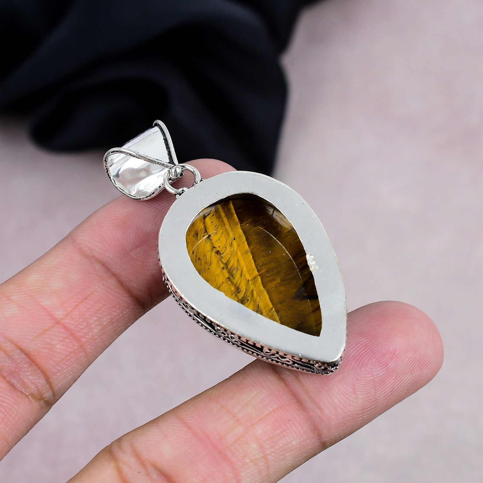 Natural Tiger Eye Gemstone Pendant in 925 Sterling Silver for Her