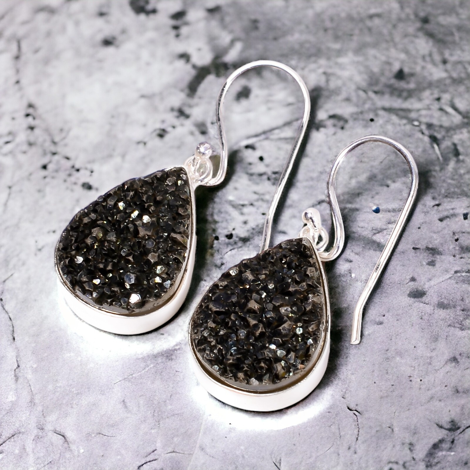 Welcome to Jaipur Silver Gallery Natural Titanium Druzy Drop/Dangle Dailywear Earrings 925 Silver For Girls Handmade Earrings, Sterling Silver Earrings, Titanium Druzy Earrings, Handcrafted Earrings SKU : - UKE-1989 Gemstone : - Titanium Druzy Stone Shape : - Pear Metal : - Sterling Silver Metal Purity : - 925 Earring Length : 1.6 Inches Earring Width : Inches _______________________________________________________________________________________ Amazing Properties of Silver ****************************** Tough and Long-lasting: Silver is incredibly strong, built to withstand daily wear and tear as well as tough environmental conditions. Easy to Shape and Design: Silver is like clay for skilled craftsmen, allowing them to create beautiful and intricate designs effortlessly. Great at Conducting Energy: When it comes to heat and electricity, silver is the go-to. It can quickly and efficiently transfer energy, making it ideal for various applications. Keeps Things Clean and Safe: Silver has a natural ability to keep harmful bacteria at bay, making it a reliable choice for promoting cleanliness and well-being. 3 Underrated Benefits Of Silver ****************************** Gorgeous Charm: Silver jewelry shines brightly, enhancing any outfit and fitting everyone's style with ease. Gentle on Skin: Silver is kind to your skin, reducing the chance of allergies and making it a favorite choice for accessories. Healing Vibes: Some believe silver jewelry has a soothing touch, possibly aiding in easing issues like arthritis, anxiety, and the blues. _______________________________________________________________________________________ For Mother's Day Gift For Father's Day Gift For Promise For Valentine' Day For Halloween Party For Christmas Day Gift For New Year Party For Mom For Her _______________________________________________________________________________________ If you need more help or want design tips, just give us a shout! We're lightning-fast in getting back to you. Every single thing we create is made by hand in our special workshop, and we put a whole lot of love and care into every piece. Thank you for stopping by! We're confident you'll have an amazing time shopping with us. We're here to make sure every moment you spend with us is filled with delight and satisfaction. Happy shopping!