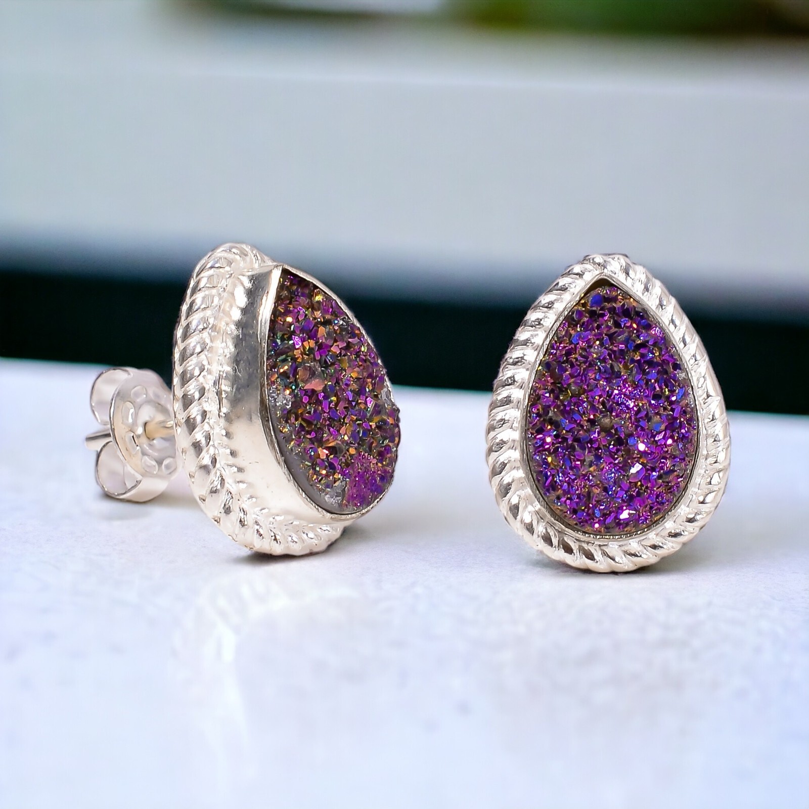 Welcome to Jaipur Silver Gallery Natural Titanium Druzy Gemstone 925 Silver Stud Minimalist Earrings For Women Handmade Earrings, Sterling Silver Earrings, Titanium Druzy Earrings, Handcrafted Earrings SKU : - UKE-2030 Gemstone : - Titanium Druzy Stone Shape : - Pear Metal : - Sterling Silver Metal Purity : - 925 Earring Length : 0.6 Inches Earring Width : Inches _______________________________________________________________________________________ Amazing Properties of Silver ****************************** Tough and Long-lasting: Silver is incredibly strong, built to withstand daily wear and tear as well as tough environmental conditions. Easy to Shape and Design: Silver is like clay for skilled craftsmen, allowing them to create beautiful and intricate designs effortlessly. Great at Conducting Energy: When it comes to heat and electricity, silver is the go-to. It can quickly and efficiently transfer energy, making it ideal for various applications. Keeps Things Clean and Safe: Silver has a natural ability to keep harmful bacteria at bay, making it a reliable choice for promoting cleanliness and well-being. 3 Underrated Benefits Of Silver ****************************** Gorgeous Charm: Silver jewelry shines brightly, enhancing any outfit and fitting everyone's style with ease. Gentle on Skin: Silver is kind to your skin, reducing the chance of allergies and making it a favorite choice for accessories. Healing Vibes: Some believe silver jewelry has a soothing touch, possibly aiding in easing issues like arthritis, anxiety, and the blues. _______________________________________________________________________________________ For Mother's Day Gift For Father's Day Gift For Promise For Valentine' Day For Halloween Party For Christmas Day Gift For New Year Party For Mom For Her _______________________________________________________________________________________ If you need more help or want design tips, just give us a shout! We're lightning-fast in getting back to you. Every single thing we create is made by hand in our special workshop, and we put a whole lot of love and care into every piece. Thank you for stopping by! We're confident you'll have an amazing time shopping with us. We're here to make sure every moment you spend with us is filled with delight and satisfaction. Happy shopping!