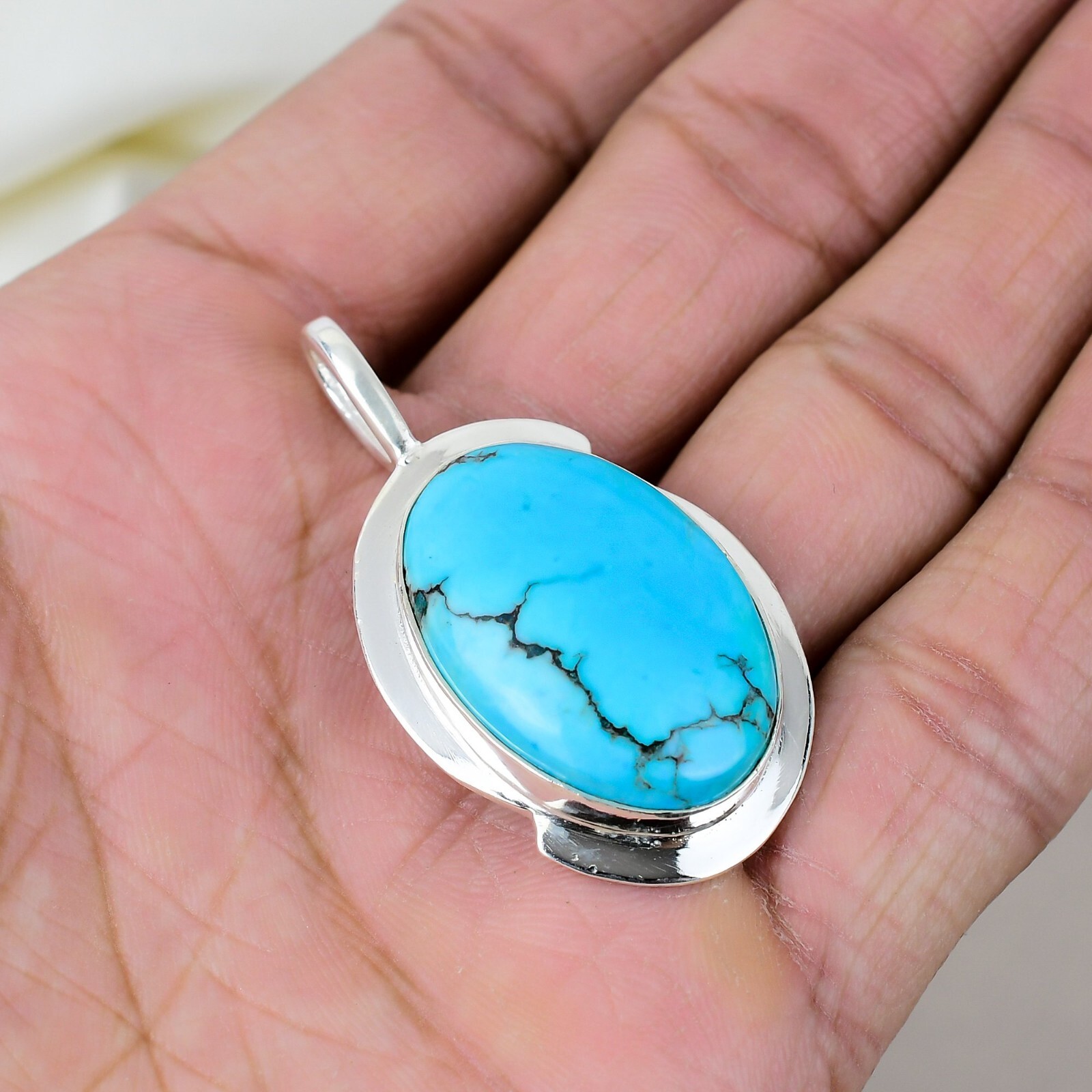Necklace Length:1.97"Colored Diamond Intensity:N/AMain Stone Shape:OvalBrand:HandmadeCountry of Origin:IndiaCountry/Region of Manufacture:IndiaMain Stone Treatment:Not EnhancedBase Metal:Sterling SilverType:PendantClosure:Same As PictureCut Grade:N/AStyle:PendantTheme:Beauty, Bohemian, Ethnic, Halloween, Love, NatureMain Stone Color:BlueMetal:Sterling SilverFeatures:HandmadeTotal Carat Weight:10 carat and aboveNumber of Diamonds:N/AMetal Purity:925Chain Type:N/AColor:SilverMain Stone Creation:NaturalMaterial:GemstonePendant/Locket Type:Same As PictureSecondary Stone:No StonePendant Shape:OvalCollection:HandmadeMain Stone:TurquoiseCertification:N/ADiamond Color Grade:N/ANumber of Gemstones:1Setting Style:Same As PictureOccasion:Anniversary, Birthday, Christening, Christmas, Engagement, Father's Day, Mother's Day, Valentine's Day, WeddingDiamond Clarity Grade:N/A
