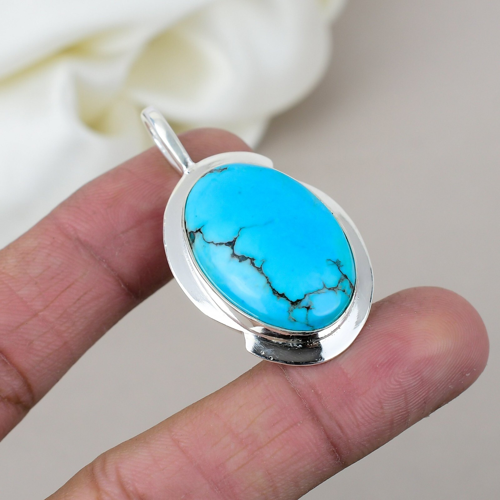 Natural Turquoise 925 Sterling Silver Statement Pendant Jewelry Gift