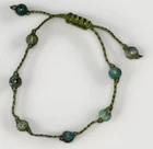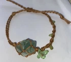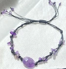 Here for sale are these gorgeous, dainty gemstone rope bracelets in 3 available styles. Your purchase includes a jewelry box and an intuitively chosen illustrated affirmation card 💜 Faceted Amethyst Cabochon & Crystal Chip Bracelet With Adjustable Black Leather Cord • 10mm faceted oval amethyst cabochon gemstone with 3mm amethyst chips • Adjustable 4-strand black leather cord • 27 amethyst gemstones 💚 Green Fluorite & Peridot Butterfly Gemstone Adjustable Woven Macramé Bracelet • One size fits most • Wrapped natural raw fluorite stone • Hand-carved peridot butterfly charm • Raw peridot chips • Adjustable brown double-strand macramé cord 💚 Dainty Chrysocolla Healing Crystal Reiki Bracelet On Adjustable Green Rope Cord • One size fits most • Eight 4mm round natural chrysocolla beads • Twisted green rope cord • Dainty, minimalist aesthetic • Chakra: Throat • Intention: Strength & self-expression • Element: Water Bundle and save!! Discounts on multiples! Check out my other natural gemstone jewelry! Photos have been taken in different light settings to show detail!!
