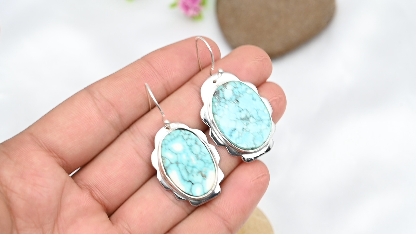 Natural Turquoise Gemstone Earrings Handmade 925 Sterling Silver Jewelry Gift
