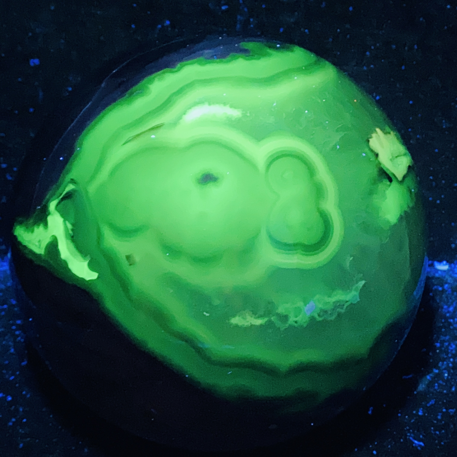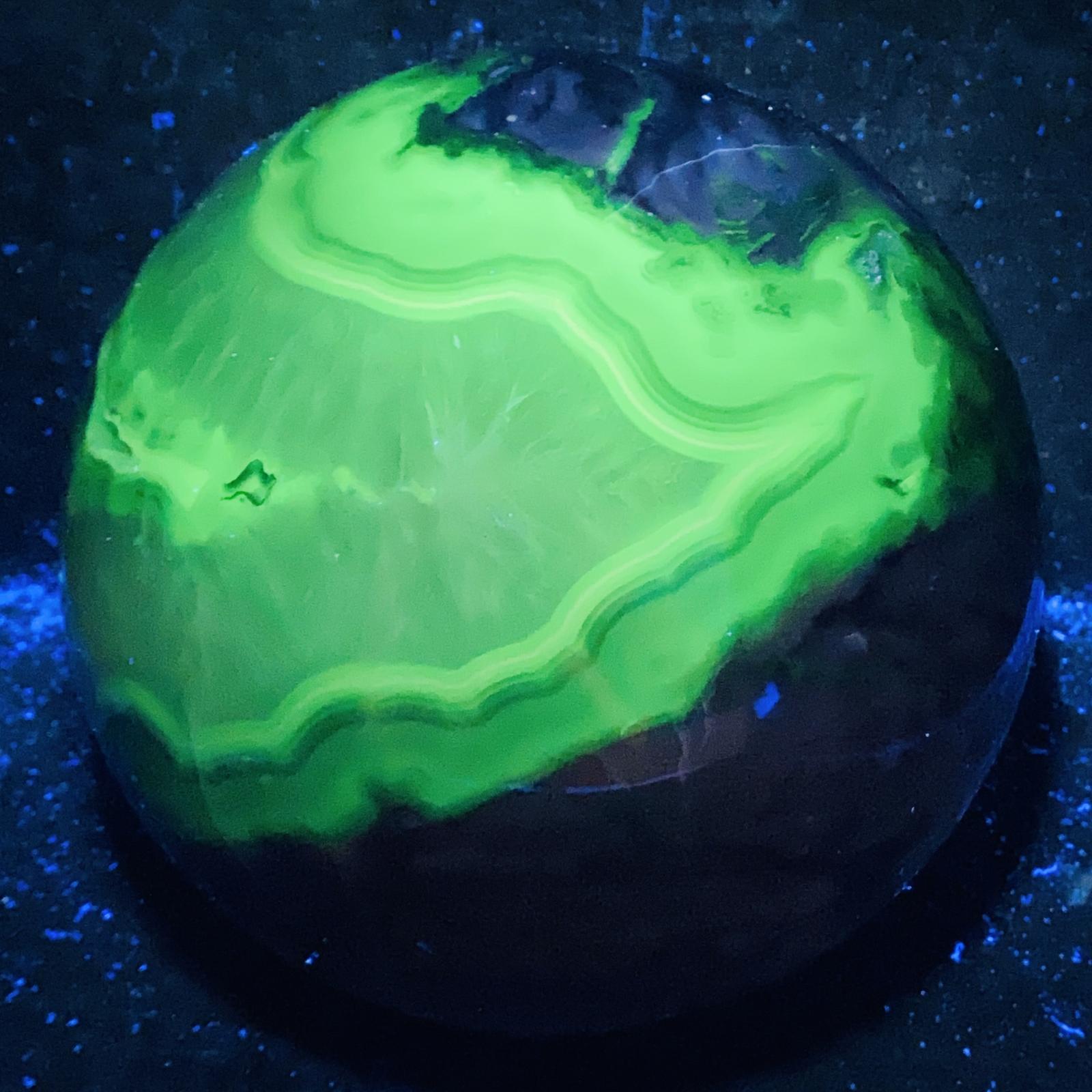 Natural Volcanic Agate Crystal Sphere 3140G UV Reactive Healing Stone