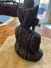 10” H x 6” W Natural wood, not sure what kind but it’s not very heavy Used but is in great like new condition