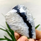 This stunning black striped agate obelisk is absolutely gorgeous! The natural patterns and smooth water drop shape make it a perfect decorative piece or crystal healing tool. It has a nice weight to it, feels solid and well-crafted. The shipping was fast and it arrived carefully packaged. Definitely exceeds expectations for the price - would make a great gift or addition to any crystal collection! Very satisfied with this purchase.
