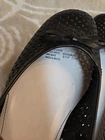 This product is a pair of Naturalizer women's flats in size 11M, featuring a sleek black leather design with laser-cut detailing. The slip-on style and round toe shape make them comfortable and easy to wear. Made for the summer and spring seasons, these lightweight and breathable flats are perfect for women looking for both style and comfort in their footwear. Crafted in Brazil, these flats are a stylish and practical choice for everyday wear. In good pre-owned condition Left shoe is slightly worn out inside, see photos Please see photos for details :)