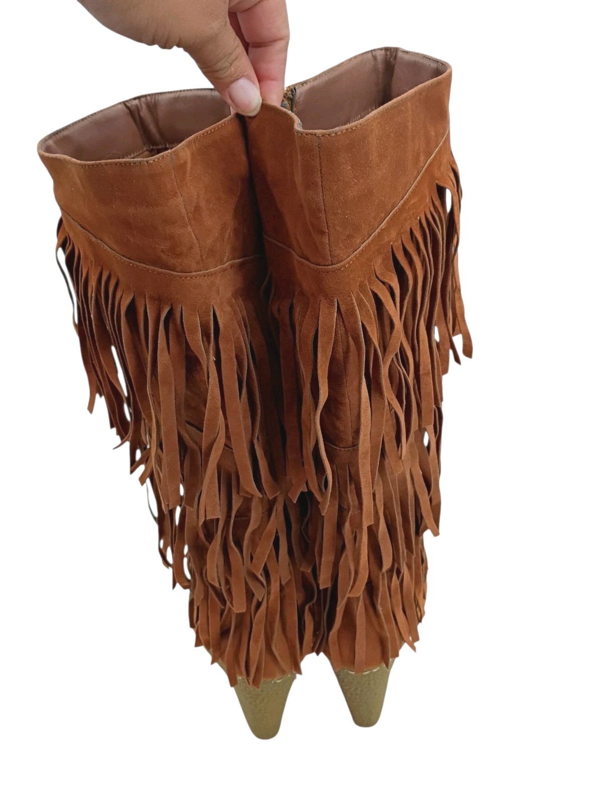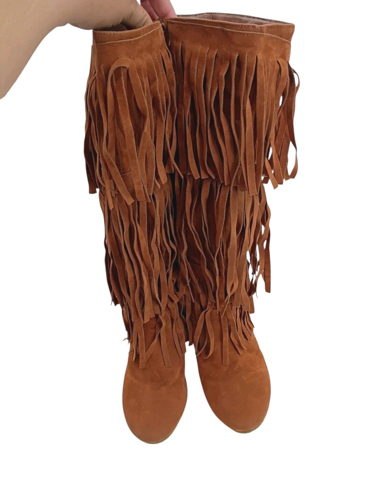 Nature Breeze Bridget Platform Fringe Fashion Boots Western Brown Zipper Suede Size 7 Good Condition Used