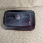 Add a touch of elegance to your dinner table with this beautiful two-piece butter dish set from Nature Elements. The rectangular stoneware dish comes with a matching lid, both in a stunning purple-blue color. This vintage art deco style piece is perfect for any occasion and is sure to impress your guests. Crafted using pottery production techniques, this butter dish set is both durable and stylish. The set includes one butter dish with lid, measuring 7.25” in length, 4.5” in width, and 3.75” in height. The backstamp is printed and the item weighs 1.9 lbs. Ideal for any nature or stoneware collection, this set is a must-have for any pottery enthusiast. Excellent condition. No chips or cracks.