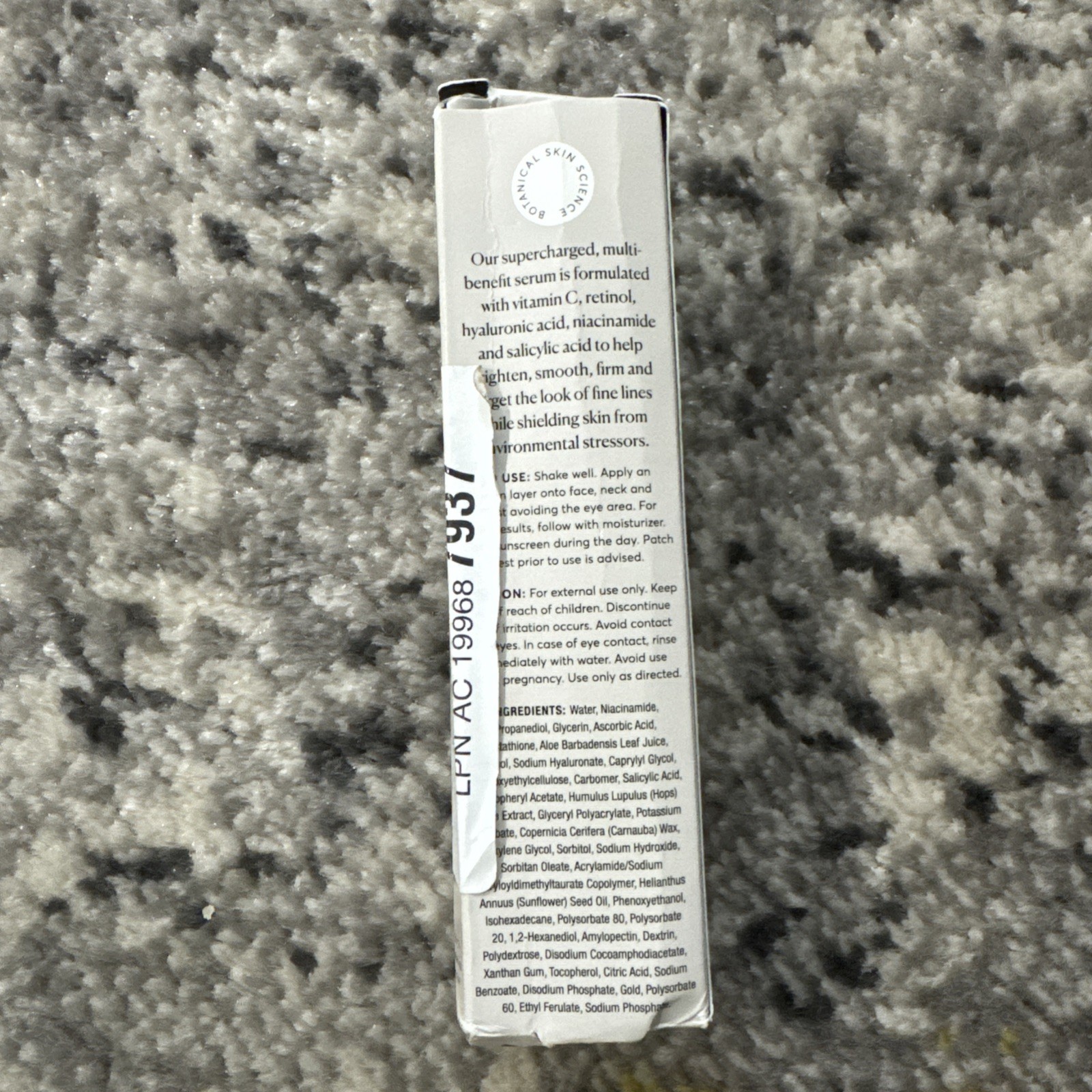 The Naturium Vitamin C Super Serum Plus is a powerful anti-aging skincare product designed to hydrate, brighten, and repair early signs of aging. This serum contains vitamin C, niacinamide, salicylic acid, sodium hyaluronate, and retinol, all known for their restorative and revitalizing properties. Suitable for all skin types, this product is perfect for addressing discoloration, blemishes, dark spots, and age spots. It is mineral oil-free, cruelty-free, and free from parabens, formaldehyde, sulfates, ammonia, silicone, dyes, and animal by-products, making it a safe and effective choice for achieving a firmer, more radiant complexion.