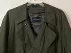 The Nautica Men's 44R Green Water Repellent Removable Warmer Long Trench Coat is a versatile and stylish outerwear option for various occasions. Made from a durable nylon polyester blend, this coat features a fold-down collar, double-breasted button closure, and removable warmer. The water-resistant and breathable fabric makes it ideal for winter, fall, and spring seasons, while the insulated design provides added comfort. With its classic trench coat style, this Nautica coat is perfect for business, casual, or formal wear, offering both functionality and a touch of designer flair. The green color and solid pattern add a pop of color to any outfit, making it a must-have for the modern man's wardrobe. Length: 51 inches. Chest: 26 inches across laying flat.