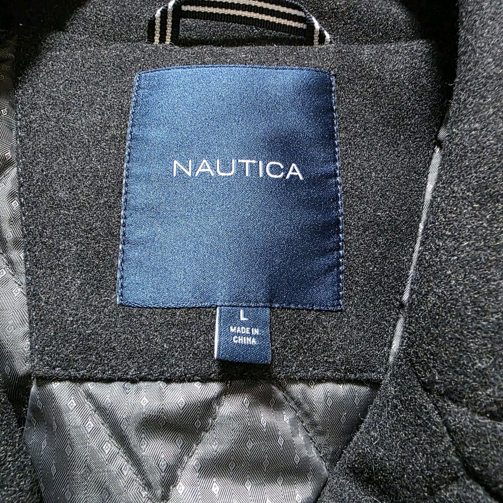 The Nautica Peacoat Trench in Men's size Large is a stylish yet practical winter wardrobe staple. Made from wool with a polyester lining, it offers warmth and comfort for the colder seasons. The navy blue color and solid pattern add a classic touch to the mid-length jacket, making it suitable for semi-casual wear. With a button closure and accents, this coat is both functional and fashionable, perfect for casual outings or travels. The Nautica brand ensures quality and timeless style, while the polyester insulation material provides added coziness for walking activities in winter and fall.