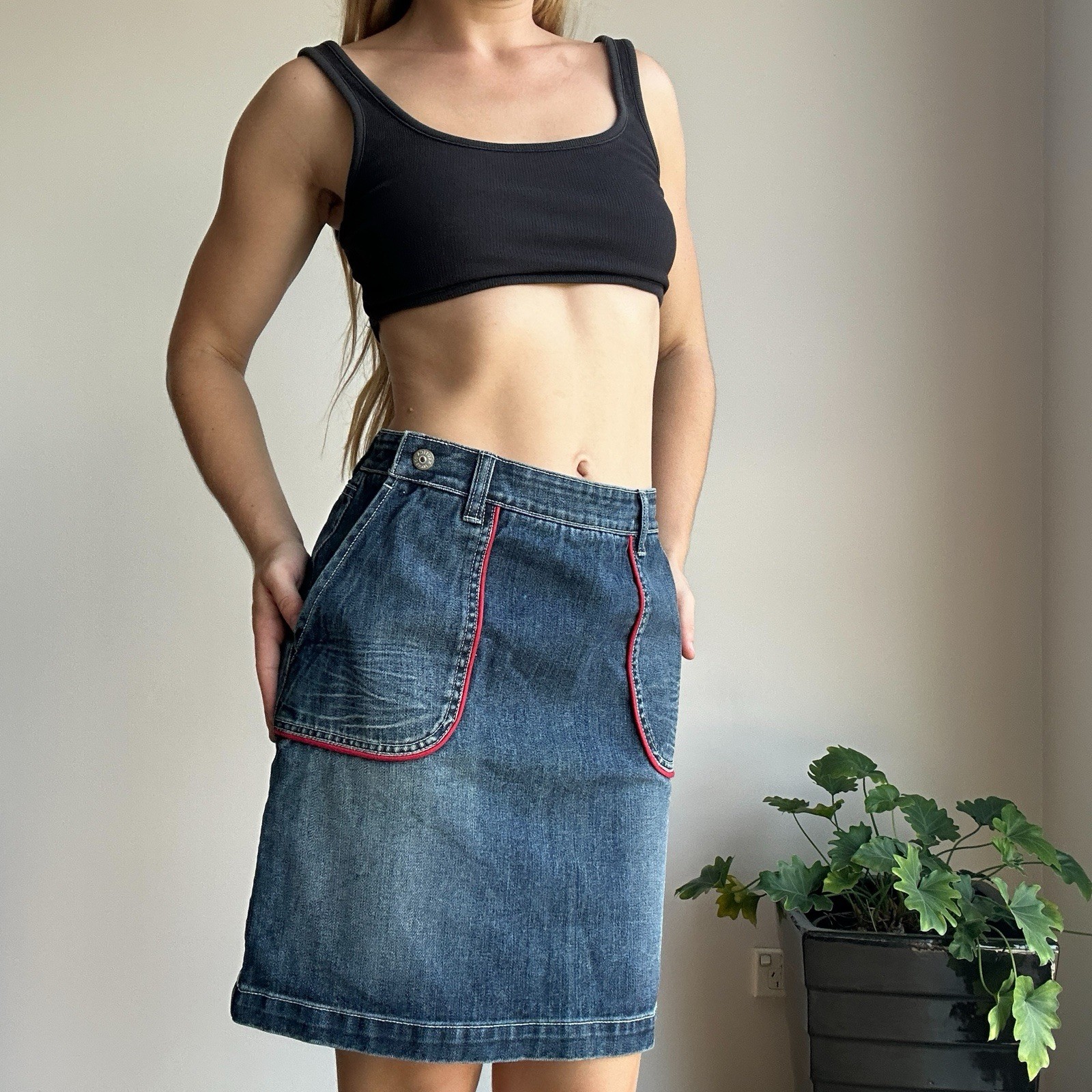 Glassons Womens Small Vintage Two Tone Denim Midi Skirt