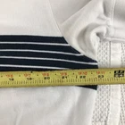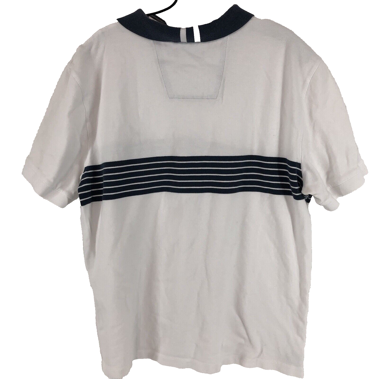 The Nautica men's XL white polo shirt with blue collar stripes and side slits is a classic and preppy piece perfect for casual occasions. Made from 100% cotton mesh fabric, this polo features a spread collar, button closure, and short sleeves for a comfortable fit. The shirt has a light fabric wash and is machine washable, making it easy to care for. With its logo accents and striped pattern, this polo combines style and performance, making it ideal for activities like rugby, walking, or golf during the summer, fall, and spring seasons.