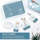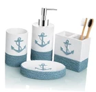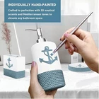 Return Policy Fast Delivery Trusted seller Nautical Bathroom Decor 4 Piece Bathroom Accessories Set | Rope and Anchor Bathroom Decor with Ocean and Sea Theme | Coastal Bathroom Soap Dispenser Set | Beach Bathroom Decor Product Description 4 Piece Bath Accessory Set with Nautical Theme: Including 1 lotion dispenser soap pump, 1 toothbrush holder, 1 tumbler, 1 soap dish. Coastal Dreaming: Bring the spirit of the ocean home with this unique set incorporating the anchor and rope nautical motifs. Carefully crafted with exquisite detail to enhance the serene relaxing feel of any bathroom. Modern Design And Quality: Soft Mediterranean tones and a smooth matte finish are ideal for coastal homes, lake houses and any beach, nautical or marine theme interiors. Easy To Clean and Maintain: Each piece is crafted from durable materials for long lasting use and effortless care. Gift Ready: This classy set of coastal bath accessories qrrives in a stylish box, ready to give to your seaside loving friends or family. Shipping Returns Payment Shipping Shipping is FREE to all addresses other than APO/PO boxes in the lower 48 states. All our stock ships from US-based warehouses. Shipped via USPS or UPS (depending on location and package weight) Unless stated otherwise, all orders will ship within 24-72 hours of your payment being processed. Check our feedback to see the great reviews of FAST shipping we offer. Returns Seller does not accept returns Payment We currently accept payment via eBay managed payments only. Once payment is cleared, we will dispatch your shipment within 1-3 business days. Please refer to the "Shipping" tab for more information regarding shipping speed to your destination.