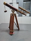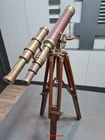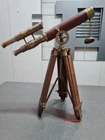 Nautical Brass Double Barrel Floor Standing Antique Telescope Wood Tripod Decor