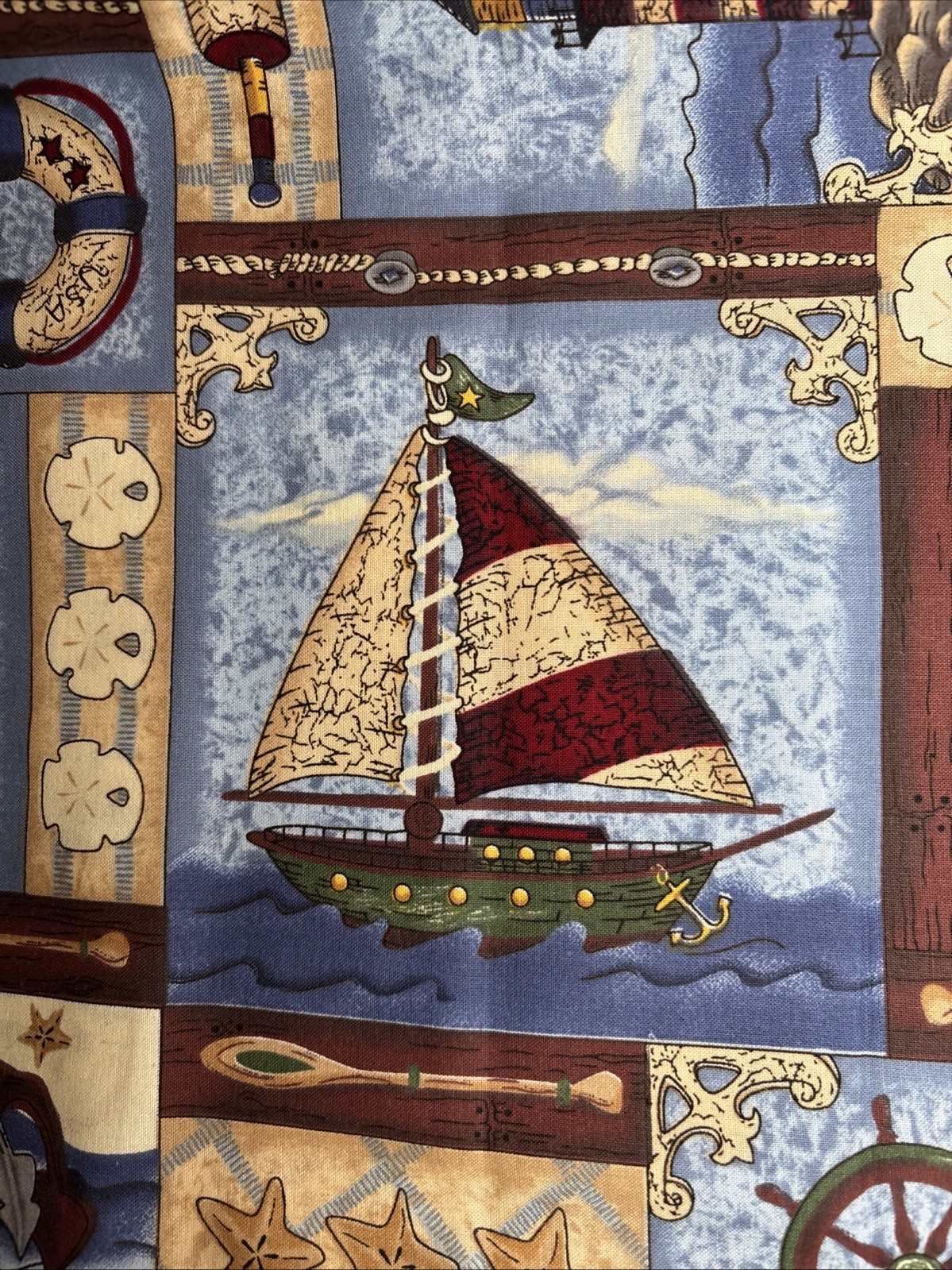The Nautical Patches designed by Leslie Beck are perfect for adding a touch of beach and nautical theme to your crafts and projects. Made of cotton fabric with a multicolor nautical pattern, these patches are suitable for creating accessories like bags and purses, quilting, and various crafts. Measuring by the yard, these patches allow for flexibility in use and customization to suit your creative vision. 44” X 36”