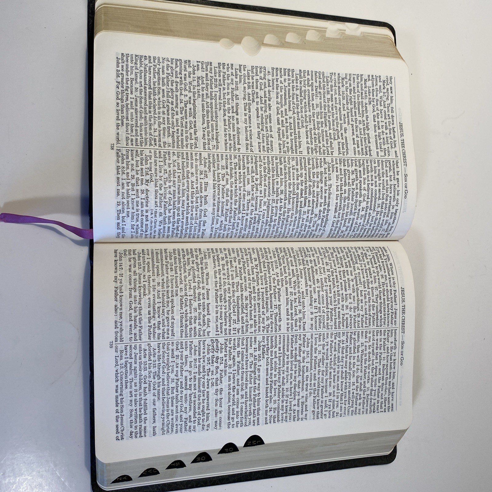 Minimal wear on cover. Pages and thumb indexes in great condition. Has bookmark ribbon. Larger print. Ships the next business day after payment😊