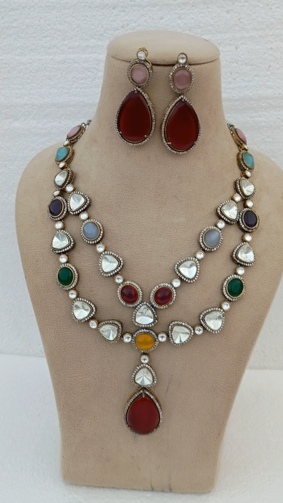 Exquisite Navratan Necklace & Ruby Earring Set - 9 Gemstone Indian Wedding Jewelry Stunning traditional Navratan jewelry set featuring authentic 9-gemstone design representing the cosmic planets, with matching ruby teardrop earrings. Perfect for Indian brides, weddings, festivals, and anyone seeking auspicious jewelry with cultural meaning! SET INCLUDES: - Double-strand Navratan necklace with statement pendant - Matching ruby red teardrop earrings - 9 different colored gemstones (Navratan) - Large ruby teardrop pendant - royal elegance - Premium gold plated finish - 22k gold look THE 9 GEMSTONES (NAVRATAN) SIGNIFICANCE: According to Vedic astrology, Navratan represents the Navagraha (9 celestial bodies): 1. **Ruby (Red)** - Sun βοΈ - Power, vitality, leadership 2. **Pearl (White)** - Moon π - Peace, emotions, intuition 3. **Red Coral (Red/Orange)** - Mars βοΈ - Courage, energy, passion 4. **Emerald (Green)** - Mercury βΏοΈ - Intelligence, communication 5. **Yellow Sapphire (Yellow)** - Jupiter β - Wisdom, prosperity 6. **Diamond/White Stone** - Venus βοΈ - Love, luxury, beauty 7. **Blue Sapphire (Blue)** - Saturn β - Discipline, longevity 8. **Hessonite (Orange)** - Rahu (North Node) - Success, fame 9. **Cat's Eye (Yellow-Green)** - Ketu (South Node) - Spirituality **Wearing Navratan jewelry is believed to:** β Balance planetary influences β Bring good fortune & prosperity β Provide protection from negative energy β Enhance overall well-being β Attract success & happiness DESIGN FEATURES: - Double-strand necklace - layered elegance - Multi-colored gemstones - vibrant traditional palette - Large ruby teardrop pendant - focal statement - Matching ruby teardrop earrings - coordinated set - Intricate gold plated setting - premium craftsmanship - Traditional Indian design - cultural heritage - Perfect for: Indian weddings, astrological gifting, festival wear PERFECT OCCASIONS: β **Indian Bridal Jewelry** - Auspicious wedding day β **Navratan Puja Gift** - Religious ceremonies β **Astrological Remedy** - Planetary balancing β **Diwali Special** - Festival of lights β **Karwa Chauth** - Marital blessing festival β **Birthday Gift** - Meaningful present β **Temple Visit** - Religious occasions β **Anniversary** - Blessing for marriage β **Sangeet/Mehendi** - Pre-wedding celebrations β **Navaratri Festival** - Nine nights celebration STYLING GUIDE: This versatile Navratan set pairs beautifully with: - Red bridal lehenga (ruby accent matches) - Multi-color bandhani saree (matches all colors) - Green silk saree (traditional combination) - Yellow anarkali (festive look) - White/ivory outfits (all colors pop) - Gold saree (royal aesthetic) CULTURAL SIGNIFICANCE: Navratan jewelry has been treasured in Indian culture for centuries: - Royal families wore Navratan for protection - Considered one of the most auspicious jewelry types - Often given as wedding gifts for blessings - Passed down through generations as heirlooms - Believed to balance the 9 planetary energies - Worn during important life events & ceremonies ITEM SPECIFICS: Main Stones: 9 Gems (Navratan) - Ruby (Red) - Pearl/White Stone - Red Coral - Emerald (Green) - Yellow Sapphire - Diamond/Clear - Blue Sapphire - Orange Hessonite - Cat's Eye (Yellow-Green) Earring Stone: Ruby Red (Teardrop) Metal: Gold Plated (22k look) Style: Navratan, Traditional Indian, Bridal Set Type: Double-Strand Necklace + Drop Earrings Craft: Traditional Indian craftsmanship Origin: Indian Heritage Design Color: Multi-Color (9 gems), Gold Occasion: Wedding, Festival, Religious, Astrological Necklace Type: Double Strand with Pendant Necklace Length: [Specify - typically 18-20"] Pendant Length: [Specify - typically 2-3"] Earring Type: Teardrop/Drop Earring Length: [Specify - typically 1.5-2.5"] Weight: Moderate (substantial feel) WHY CHOOSE THIS NAVRATAN SET: β **AUTHENTIC 9 GEMS** - Complete Navratan significance β **CULTURAL VALUE** - Astrological & traditional meaning β **COMPLETE SET** - Necklace + matching earrings β **VERSATILE COLORS** - Matches multiple outfits β **DOUBLE STRAND** - Layered elegance β **RUBY ACCENT** - Premium statement pendant β **GIFT-WORTHY** - Meaningful & beautiful PERFECT GIFT FOR: - Bride-to-be (wedding day blessing) - Wife (Karwa Chauth/anniversary) - Mother (blessing for family) - Daughter (coming-of-age celebration) - Sister (Rakhi/wedding) - Spiritual seeker (astrological balance) - Anyone who believes in Vedic astrology - Indian jewelry collector π ASTROLOGICAL GIFTING: Navratan jewelry is considered the PERFECT gift because: - Suitable for ALL zodiac signs - Balances all planetary influences - No negative effects (unlike single gemstones) - Universally auspicious - Shows cultural awareness & thoughtfulness MEASUREMENTS: Necklace Length: [Specify - e.g., 18 inches inner strand, 20 inches outer] Pendant Drop: [Specify - e.g., 2.5 inches from necklace] Pendant Width: [Specify - e.g., 1 inch at widest] Earring Length: [Specify - e.g., 2 inches from piercing] Earring Width: [Specify - e.g., 0.75 inch at widest] π STONE & CRAFTSMANSHIP: - 9 different colored gemstones in necklace - Large ruby teardrop centerpiece - Ruby teardrop earrings match - All stones securely set in gold plating - High-quality gem cuts for maximum sparkle - Traditional setting technique - Durable construction for longevity PACKAGING & PRESENTATION: - Arrives in elegant jewelry box - Perfect for gifting - Includes significance card (if requested) - Secure packaging for safe delivery - Care instructions included - Ready to present CARE INSTRUCTIONS: - Store in jewelry box or soft pouch - Keep separate from other jewelry - Avoid water, perfume, cosmetics - Remove before bathing/swimming/sleeping - Clean with soft, dry cloth only - Avoid harsh chemicals - Re-plate gold as needed (after years of wear) SHIPPING & RETURNS: - Fast USA shipping - 1-2 business day handling - Secure packaging with tracking - 30-day money-back guarantee 