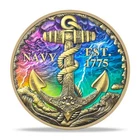 Item Details Description : Celebrate the honor and legacy of the U.S. Navy with this striking Navy Anchor & Kraken Challenge Coin . This 40mm coin features a bold, high-relief design that captures the strength and courage of those who serve at sea. Crafted with a stunning antique bronze finish, this collectible coin is a must-have for Navy personnel, veterans, or military enthusiasts. Size : 40mm in diameter, 3mm thick—perfect for display or carrying as a personal keepsake. Material : Made from durable zinc alloy, plated in antique bronze, giving the coin an elegant and lasting finish. Design : The front side features a powerful anchor wrapped in rope with a vibrant, stormy background of purple lightning, engraved with "Navy EST. 1775," symbolizing the Navy’s long-standing tradition. The reverse side showcases an intricately detailed Kraken, symbolizing strength and fearlessness, with the words "Honor, Commitment, Courage" and the declaration "The Sea is Ours." Craftsmanship : High-relief hydraulic embossing makes the details pop, from the swirling waves around the anchor to the Kraken’s menacing tentacles, creating a coin that feels both dynamic and powerful. This Navy Anchor & Kraken Coin is more than just a collectible—it’s a tribute to the bravery and commitment of Navy personnel. Whether you’re adding it to your military coin collection or gifting it to a fellow sailor, this coin is a symbol of honor, courage, and the mighty force of the sea. Amazing Treasure Still wondering what to add in a collection? A special and long-last memory gift? Or the connection between you and your most important one. You can always find your own treasure here. Packing Each coin will be packed up individually with a plastic case suit in opp bag. Shipping We'll start shipping as soon as possible within 2 business day normally. Tracking will be available after. Feedback We try to make sure ALL customers are satisfied with our services, if you do, a POSITIVE feedback is appreciated, thank you very much. And we always leaving a positive one for customer when item is delivered successfully. Contact Us Feel free to contact us at any time, we're happy to help. You can reach us by eBay or E-mail. Have a nice day!