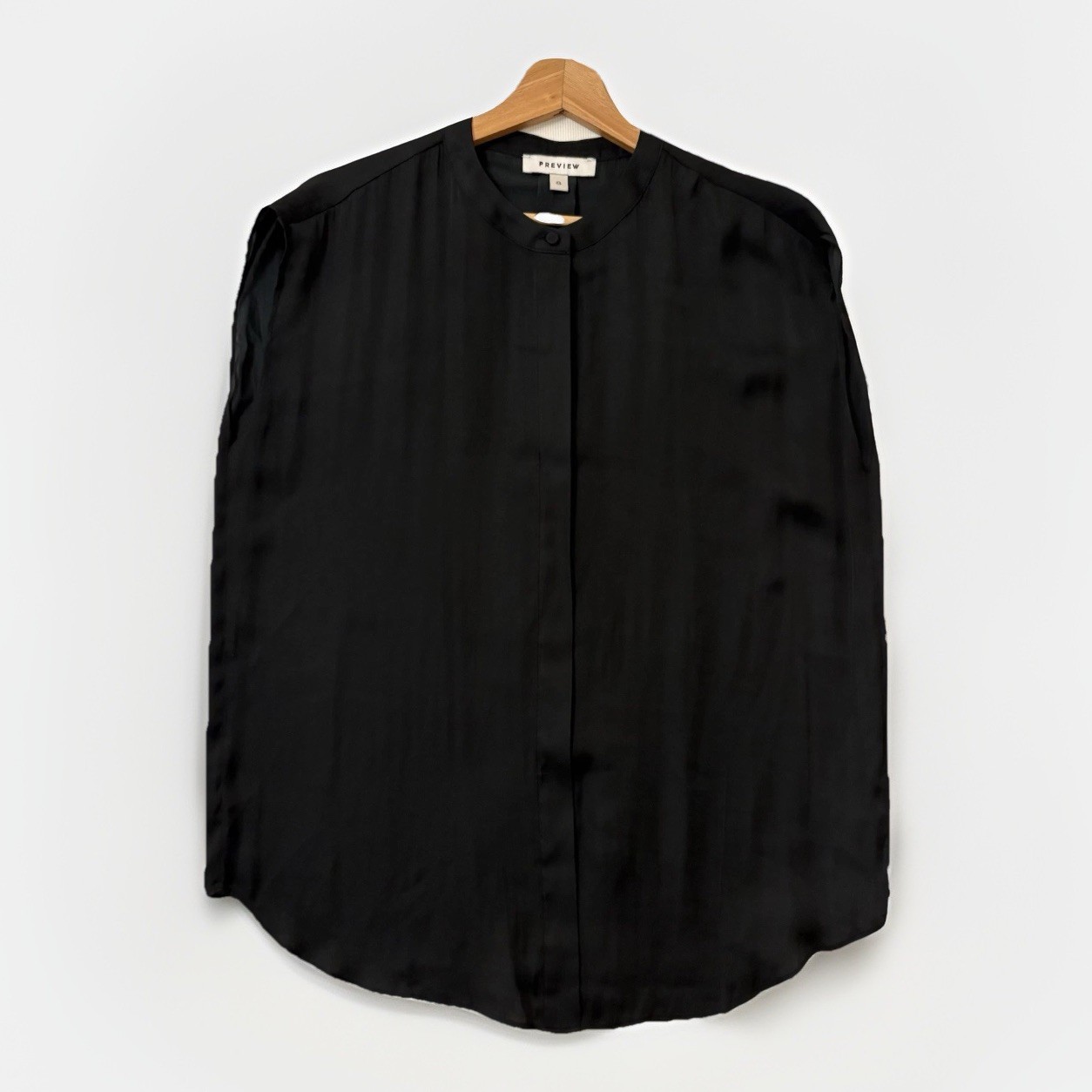 Look effortlessly stylish in this Target Preview navy blue silk blouse. With a round neck and sleeveless design, this classic fit blouse features a button closure and cap sleeves, perfect for any occasion from weddings to casual outings. Made from lightweight and easy-care polyester fabric, this slimming blouse is a versatile addition to your wardrobe, suitable for all seasons. Add a touch of elegance to your look with this collarless sheer blouse that is quick-drying and perfect for workwear or parties.