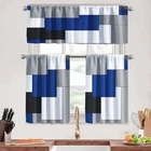 Navy Blue Thin Kitchen Curtains Tiers and Valances Set 3 Piece for Windows Grey