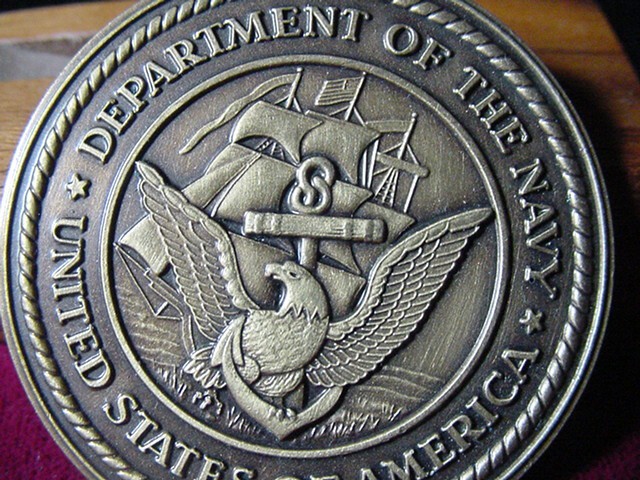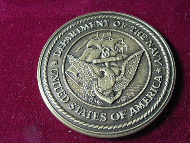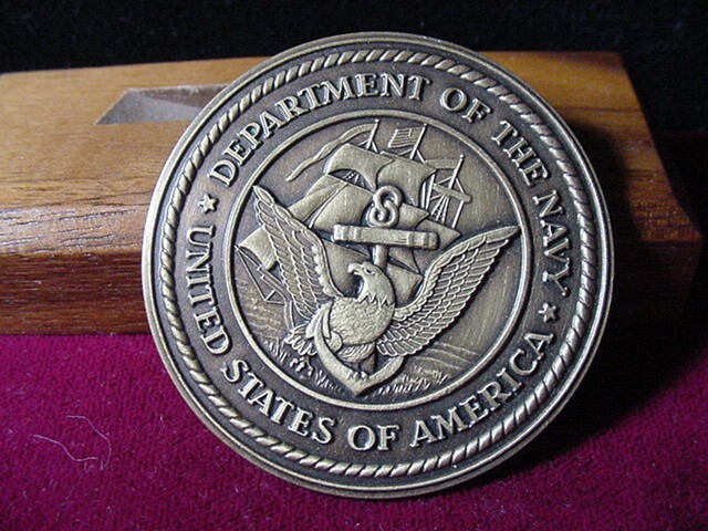 The wooden stand is not included in the auction, it is used for display purposes only Official Department of the Navy Challenge Coin- Free Shipping The coin is 1.75"in diameter. .Mint condition. Free shipping in the US