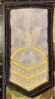 Here is a United States Navy rating or rank badge / patch for Damage Controlman Senior Chief Petty Officer Patch. USN DCCS, multi-piece construction gold embroidered chevrons and silver embroidered eagle and specialty mark on blue or black material. This patch appears to be new, old stock (NOS). Excellent condition, see photos.