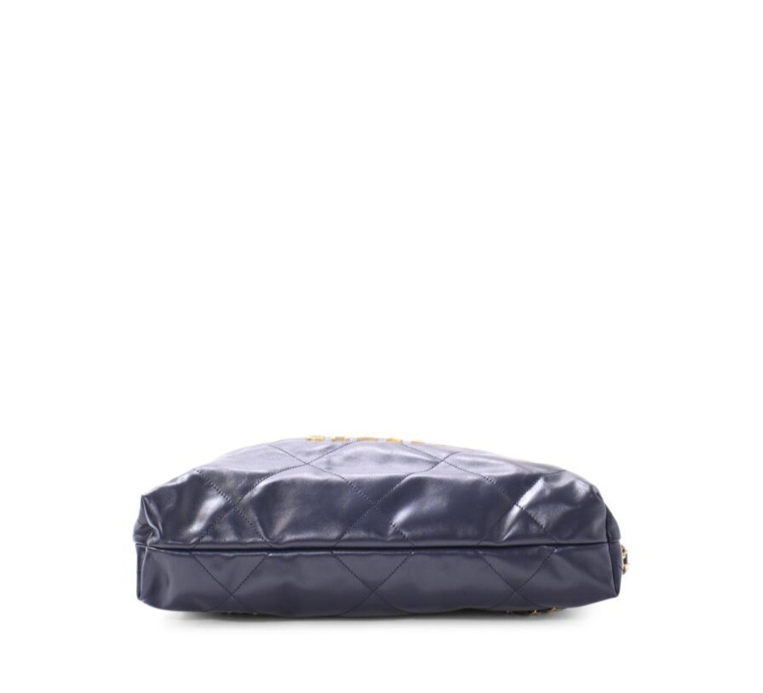 Crafted with the modern woman in mind, the Chanel 22 Backpack presents a seamless blend of sophistication and practicality. Its lustrous quilted calfskin exterior, dyed in a deep navy hue, shimmers with every movement. Gold-tone hardware adds a touch of luxurious contrast, ensuring your essentials are secured in style. Within its spacious design, the backpack features multiple compartments to keep your belongings organised. Whether you're navigating the urban jungle or attending a casual work meeting, this Chanel backpack is the quintessential accessory for those who appreciate elegance and functionality.