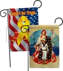 PROUDLY Made In USA - Package And Product Designed In California PURCHASE WITH CONFIDENCE - From 's US Authorized Resellers MADE OF DURABLE - 100% Thick Polyester Fabric construction helps resist the wear and tear from frequent use TEXT READABLE BOTH SIDES - Garden Flags Pack Double-Sided Print DURABLE FLAG - Double stitching panels on multiple rows and high quality Sleeve to provide lasting strength VIBRANT COLORS - With UV-Resistant Maintains Its Colors All Season Long FEATURES - Sleeve Hanger fits standard Banner/Flagpole, Bracket, Arbors or stand, SOLD Separately