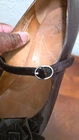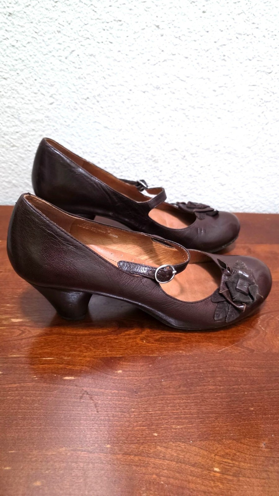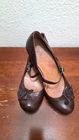 These timeless brown leather Mary Jane heels combine elegance and comfort. Featuring a 2-inch heel and floral accents, they're ideal for a polished look. • Adjustable strap with buckle closure • 2-inch sturdy heel • Decorative flower accents on the toe area • Cushioned insole for comfort • Durable leather upper Heel height = 2 inches CONDITIONS pre owned, minor wear and scuff, great conditions. see photos for more details