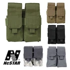 NcSTAR VISM is a manufacturer of high quality tactical accessories. They have been manufacturing high quality products since 1997. They are dedicated to providing customers with top of the line pouches, optics, and tactical equipment for the most affordable price out there. The NcSTAR Quad 5.56/.223 Magazine Pouch is a MOLLE/PALS pouch that allows for fitment to any rig with MOLLE webbing. It is composed of a high quality nylon material for durability. The pouch will securely hold four .223/5.56 or 7.62 magazines. It is equipped with hook and loop flap closures that hold the magazines down into the pouch while stored. Item Condition - Brand New in packaging Manufacture: NcSTAR Colors: Black, Tan, OD Green, Digital, Gray Compatibility: 5.56/.223 magazines, 7.62 magazines Features: - Fits four 5.56/.223 or 7.62 magazines - Composed of a high quality nylon material - MOLLE/PALS straps to attach to modular surface on vests, chest rigs, bags, and more - Hook and loop flap closure to secure magazines - Compact size for easy mobility and placement