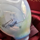 The Ne'Qwa Art Christmas Snowman Ornament by Peggy Abrams is a large hanging finial ornament made of blown glass. It features an Old World Santa and snowman theme, with a unique reverse hand-painting style. This ornament is part of the Ornaments collection and is signed by the artist. It is 6 inches in height and handmade, making it a beautiful and collectible piece for Christmas decorations. Comes in original box, certification of authenticity paperwork. Wear to outside box. Sold as is