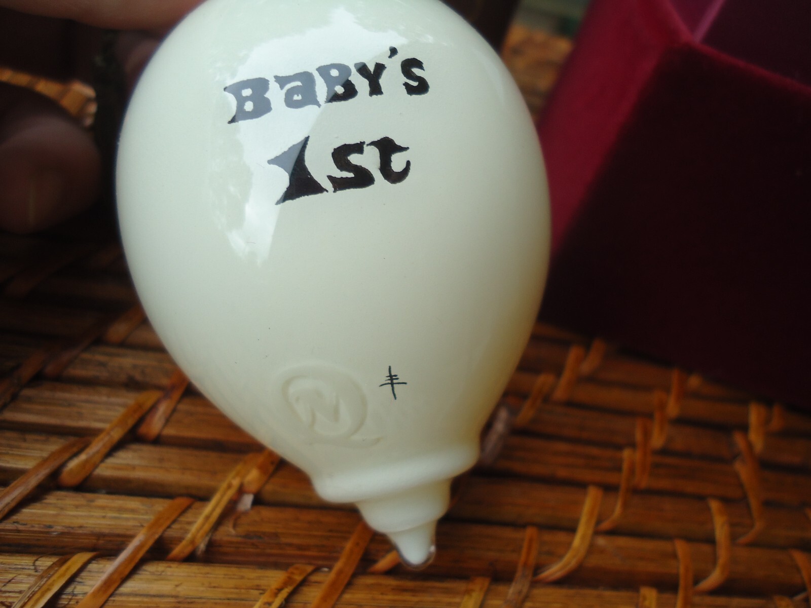 Ne' Qwa Blown Glass Art Baby's 1st Ornament Stork Velvet Box Gift Christmas Clare Mackie Artist This comes in the velvet box and original package. The cardboard does have wear, tear, and discoloration as shown in the pictures.