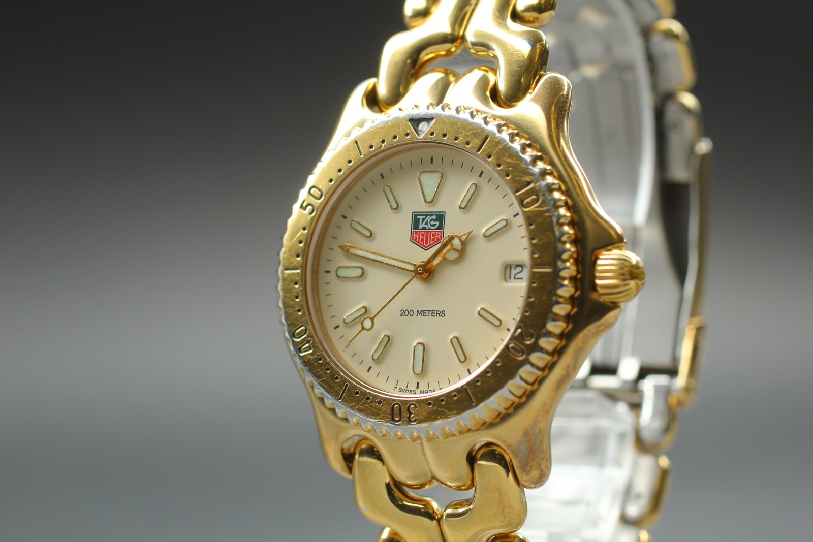 [Near MINT] TAG HEUER S/el S94.706 M/E Gold Cream Dial 37mm Men's Qz Watch #55550152 Description Total Condition; Near MINT Appearance; Appearance is beautiful. tiny scuffs from normal use. It shows signs of use. *Please check photos. Functional; It works properly. The watch is currently running smoothly, but since it is a battery-powered watch, there is a possibility that it will stop during transportation. Please understand that we do not guarantee that this will happen. Please contact me first for return before you ship it back to me. Bundled Items; All you can see on the picture will be included in a set of a package. Above condition is based on my own opinion. Please check the photo carefully. Please feel free to contact me for any questions! Thank you. Shipping I send a product by FedEx International Priority,eBay SpeedPAK Express . I attach the tracking number. Please bid it without worrying. Shipping is available from Monday to Friday. Weekends are not available because office is closed. Returns Unconditional Return Policy Customer service and satisfaction are very important to us. I have an unconditional return policy if notified within 30 days of the receipt of the item. All returned items must be the original condition. All return requests must be made within 30 days of the receipt of the item. Please contact me first for return before you ship it back to me. The postage of the returned goods is a buyer burden. International Buyers Please Note: Import duties, taxes, and charges are not included in the item price or shipping cost. These charges are the buyer's responsibility. Please check with your country's customs office to determine what these additional costs will be prior to bidding or buying.