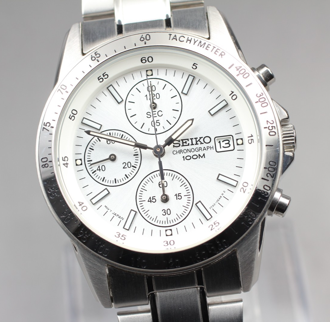 [Near MINT W/Box Paper] Seiko 7T92-0DW0 White Chronograph Dial Qz Men's Watch #74 Description Total Condition; NEAR MINT TOP MINT Pre-owned, Almost new item MINT Pre-owned, Like new NEAR MINT Pre-owned, almost no signs of use EXCELLENT+++++ Pre-owned, minimal signs of use EXECELLENT Pre-owned, heavy signs of use VERY GOOD Poor appearance Case : Near MINT Band : Near MINT Windshield : Near MINT Serial Number; 150456 Appearance; Appearance is beautiful. Band: Fits wrists up to about 190 mm (7.48 inches). Case size: About 38 mm Length size : About 46 mm tiny scuffs from normal use. It shows signs of use. *Please check photos. Functional; It works properly. Bundled Items; Box Case Paper All you can see on the picture will be included in a set of a package. Above condition is based on my own opinion. Please check the photo carefully. Please feel free to contact me for any questions! Thank you. Shipping I send a product by FedEx International Priority . I attach the tracking number. Please bid it without worrying. Shipping is available from Monday to Friday. Weekends are not available because office is closed. Storage and Packing Storage Immediately after shooting, it is placed in a closed container with desiccant and stored for 24 hours and 365 days in a temperature and humidity controlled warehouse. All products, including cameras and lenses, are stored in a temperature- and humidity-controlled warehouse 24 hours a day, 365 days a year. Packing By weight and shape of each product, I use 13 kind of cushioning materials and pursue safety and weight reduction. Returns Unconditional Return Policy Customer service and satisfaction are very important to us. I have an unconditional return policy if notified within 30 days of the receipt of the item. All returned items must be the original condition. All return requests must be made within 30 days of the receipt of the item. Please contact me first for return before you ship it back to me. The postage of the returned goods is a seller burden. International Buyers Please Note: Import duties, taxes, and charges are not included in the item price or shipping cost. These charges are the buyer's responsibility. Please check with your country's customs office to determine what these additional costs will be prior to bidding or buying.