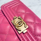 **Title:** Near Mint Authentic CHANEL Boy Chanel Tri-Fold Wallet Pink **Description:** This is an authentic CHANEL Boy Chanel tri-fold wallet in pink. It is in near mint condition. - Purchased from an authorized retailer. - Used for only two days and then carefully stored. - I received another wallet as a gift, which is why I am reluctantly selling this one. - I may remove this listing at any time, so please act quickly. This wallet comes with a serial number starting with 27. Please see the photos for details. **Condition:** - The coin compartment has a slight discoloration from coins, but the rest of the wallet is very clean and nearly unused. - I am quite particular about condition, and I believe it is in excellent shape. - If you are looking for something in perfect, store-like condition, please consider this before purchasing. **Included:** - No box or packaging, but it is guaranteed authentic. You can use authentication services for peace of mind. **Size:** - Width: Approximately 10.4 cm - Height: Approximately 7.5 cm - Depth: Approximately 3.5 cm **Material:** - Genuine lamb leather **Color:** - Pink (not too vivid or salmon; a very elegant CHANEL pink) **Line Name:** - Small Wallet **Motif:** - Coco Mark Thank you for your interest!