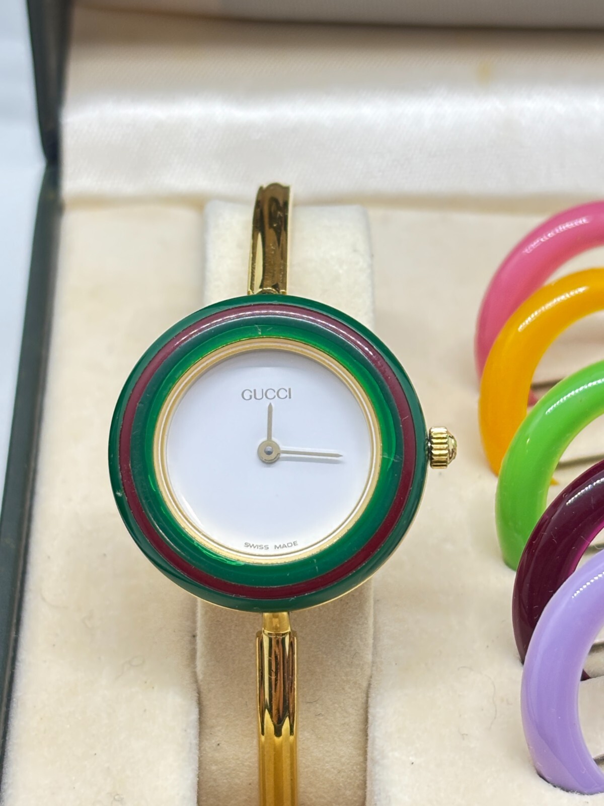 $ 147.84[Near Mint w/Box] GUCCI 11/12 Change Bezel Ladies Watch 12 Colors Gold Used F/S