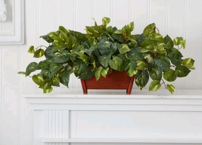 HomeNearly Natural 15in Pothos Plant in Rectangle Decorative Planter for Home Decor
