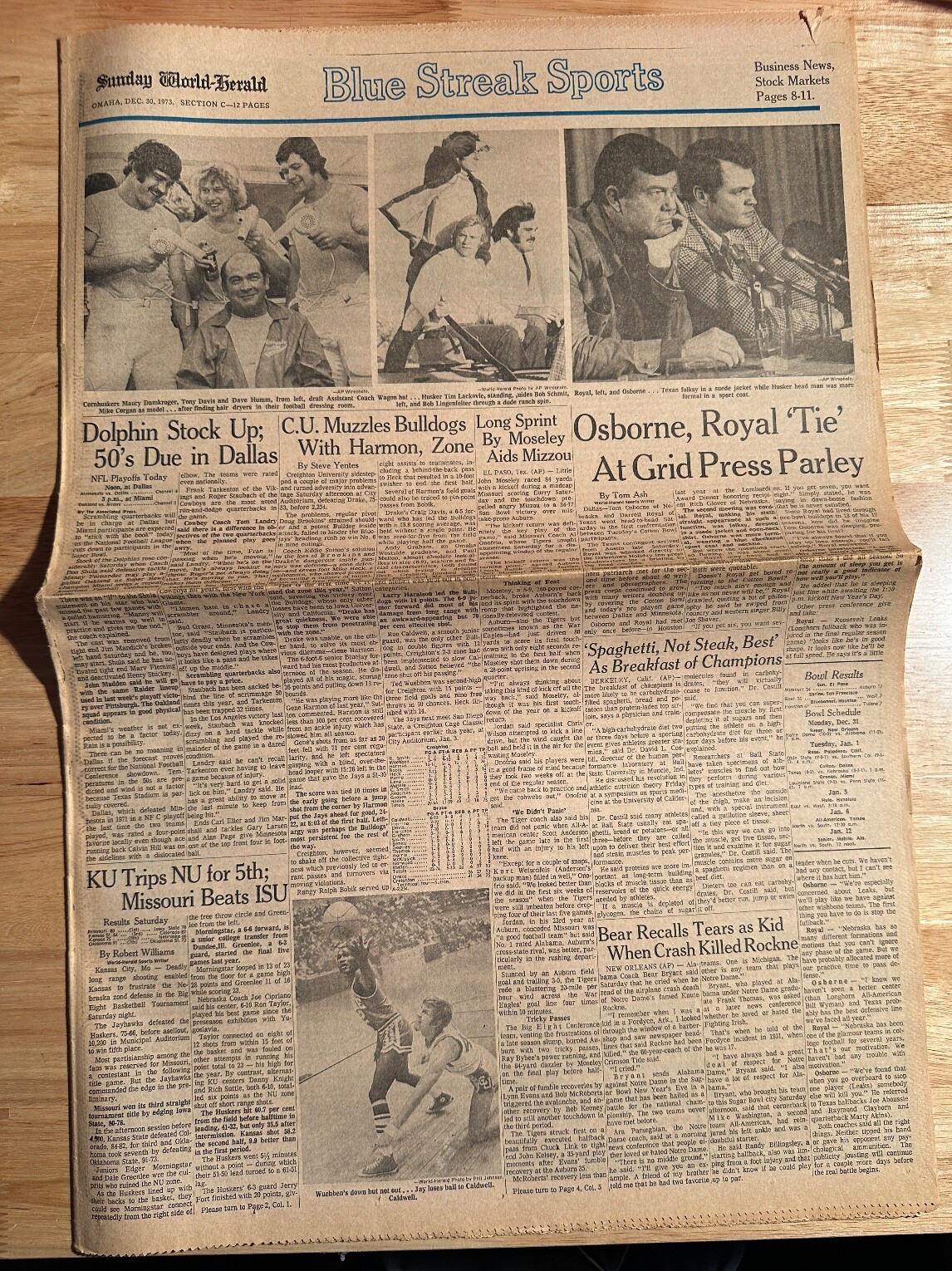 Up for bidding is a 1973 Omaha World Herald sports section. In used condition.