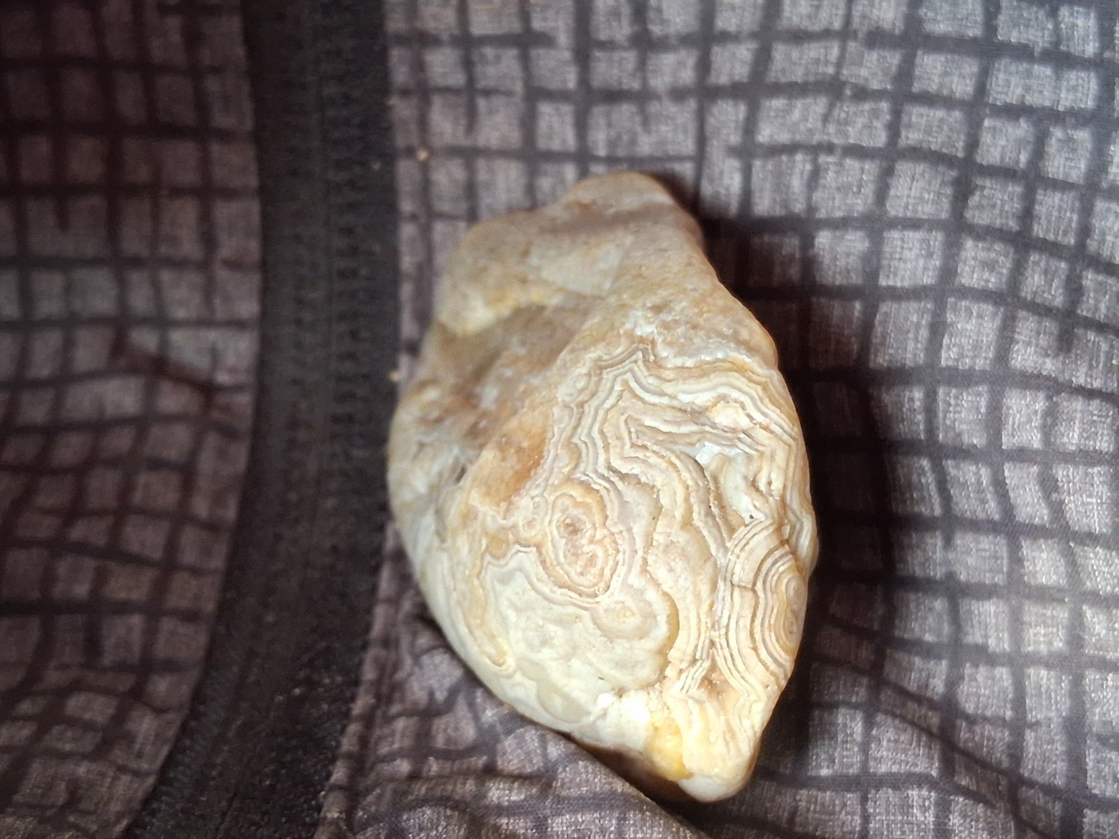 The Fairburn Agate is a type of display specimen, specifically a crystal and mineral specimen. It is a unique and collectible item that falls under the category of rocks, fossils, and minerals. This particular agate showcases striking patterns and colors created by the natural process of sedimentary rock formation, making it a visually appealing addition to any collection. Its geological significance and aesthetic value make it a coveted piece for collectors of crystal and mineral specimens.