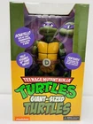 The NECA TMNT Teenage Mutant Ninja Turtles Cartoon Giant Sized Donatello Figure 1/4 is a 15-inch oversized action figure of the character Donatello from the Teenage Mutant Ninja Turtles TV show. This original figure is based on the Nickelodeon Animation Studio's animated series and is part of the Teenage Mutant Ninja Turtles franchise. Made of plastic, the detailed figure features Donatello in his ninja attire and includes a ship as part of the accessory. This collectible item is a must-have for fans of the popular cartoon and is packaged in its original, unopened box.