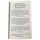 Harper Torch FICTION Neil Gaiman’s “Anansi Boys” - Dive into a World of Myth and Magic Key Features: Author: Neil Gaiman Publisher: Harper Torch Format: Paperback Genre: Fantasy, Fiction, Mythology Spellbinding Story: Follow the magical journey of the Anansi Boys Masterful Writing: Neil Gaiman’s captivating storytelling at its best Mythological Elements: Richly woven with African folklore and mythology Memorable Characters: Vibrant and unforgettable characters that come to life Critical Acclaim: A New York Times bestseller and recipient of multiple awards Collector’s Edition: A must-have for fans of Neil Gaiman and fantasy fiction Product Description : Embark on a mesmerizing adventure with Harper Torch FICTION’s edition of Neil Gaiman’s “Anansi Boys.” This paperback edition transports readers into a world where myth and magic collide in a spellbinding tale of family, identity, and destiny. Following the story of Charlie Nancy, the novel unfolds as he discovers his estranged father’s true identity as the West African spider god, Anansi. As Charlie navigates the complexities of family relationships and confronts the legacy of his heritage, he finds himself embroiled in a fantastical journey filled with twists and turns. With Neil Gaiman’s signature blend of wit, humor, and imagination, “Anansi Boys” seamlessly weaves together elements of African folklore and mythology to create a rich tapestry of storytelling. From the vibrant streets of London to the mystical realms of the spirit world, readers are drawn into a world where gods walk among mortals and the line between reality and myth blurs. Winner of multiple awards and a New York Times bestseller, “Anansi Boys” is hailed as a modern classic of fantasy fiction. Whether you’re a longtime fan of Neil Gaiman or new to his work, this Harper Torch FICTION edition is a must-have addition to your library. Book conditions is good as seen in the photos, if you need further information feel free to contact me.