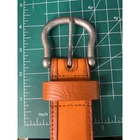 Preowned Neiman Marcus Brown & Orange Leather Belt Size 38 Colorblock Pattern Antiqued Silver-Tone Hardware Buckle Closure The brand is not stamped in the belt but I have one just like it in Blue and it was purchased at Neiman's.