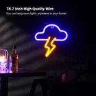 【Light Up Your Home】BerniceKelly LED lightning cloud neon sign light up your home, add romantic with LED neon lights for home decoration. Fantastic shape and color creates pleasant romances and fairy-tale effects that make the environment out of the ordinary, making the simple life more colors and interesting. It is used as the neon signs wall decor, neon wall lamp, neon light and night light to lit up countless families. 【Dual Power Choices & Easy To Install】BerniceKelly neon light only requires 3 AA batteries (not included) or Insert USB interface (Please remove the batteries if you use USB), Size of the neon sign lights is 10.9*10.8inch, comes with 70.8 inch power cord, cloud lightning shaped night light with hole (hook is included), you can hang it on the wall or place it on the table at will, install it quickly and easily. Use BerniceKelly neon sign to enliven a living room, make a stylish bar or game room 【Safety & Energy Saving & No Eye Hurt】The neon lights use high-quality flexible silicone LED strip lights, which have strong light transmission, soft and uniform light, and bright and do not hurt the eyes. Our light use 4.5V low voltage advanced electrode system, low energy consumption and long life, LED neon lights, brighter and safer than traditional glass neon lights. Which is no risk of too hot or glass damage when it is decorated in your bedroom, home, kids room, game room, man cave. 【Perfect Decoration】BerniceKelly neon lights decorate your home to create a warm, comfortable, fun and romantic atmosphere. Perfect for adding personality to bedrooms, homes, offices, bathrooms, cafes, bars, parties, Windows, desks and balconies. It can be given to couples, ladies, and children at Christmas, Valentine's Day, birthdays, parties, performances, and special occasions. 【Purchasing 100% Service of Neon Signs】We check every package before we send the neon signs out, to make sure no problem for each LED cloud neon sign package. We offer 24 hours customer support on line/replacement/return/30 days refund. If you have any problem for night light or you need any help, please contact us with no hesitation , we will provide you problems within 24 hours. Product Description Cloud Lightning Neon Light High-quality materials bring safer and more beautiful lighting effects -The most advanced electrode system, low energy consumption and long life. - A combination of two different colors of neon light. - Please don't worry about it getting hot, no risk of glass breakage or harmful substances leaking. - LED neon sign is more vivid, resistant to high temperatures and durable. Neon lights Specifications: Voltage: 4.5V Wattage: 3W Size: 10.8 inch x 10.9 inch USB Wire Length: 76.4 inch Color: blue cloud yellow lightning/blue cloud Pink lightning Package Included: 1 x Neon Sign ;1 x Punch-free Hook Installation is Quick & Easy -Neon lights have 1 holes, we provide an adittional hook that make it easier to install the neon lights. You can hang it on the wall or place it on the table at will. It is convenient to install and operation. Easy to Use -BerniceKelly neon light have long enough wires (76.4 inches) to be hung anywhere in the room or even on the ceiling. And our wire material is transparent, has a very strong concealment effect and will not affect the appearance. Best Home DIY Decor Neon Night Light -These neon Sign lights would create a warm and fantastic atmosphere for your family!Neon signs can be found even in the darkest of time in your living room. Light Up Your World -Cute neon LED sign is an ideal eye catching to your home decor or party, making the simple life more colors and interesting. Perfect Home Decoration - Neon lights on birthdays, Valentine's Day, Christmas for family, lovers, girlfriends, girls, children, etc; - LED neon lights could be used as everyday home decor, great for mantel, wedding, bachelorette party, bridal banquet, birthday party and celebration occasions. - Great to add personality to bedroom, home, office, bathroom, cafes, bar, party, window, desk, balcony.