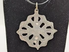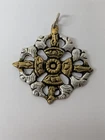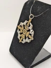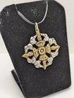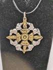 Nepal Tibet Buddhist Vajra Double Dorje Amulet Talisman Metal Pendant. Silver Color Metal With Gold Color Details. Approximately 1.4 Inches Wide x 1.65 Inches Long Including The Hanging Ring. Please check out the photos to see the sample item in detail.